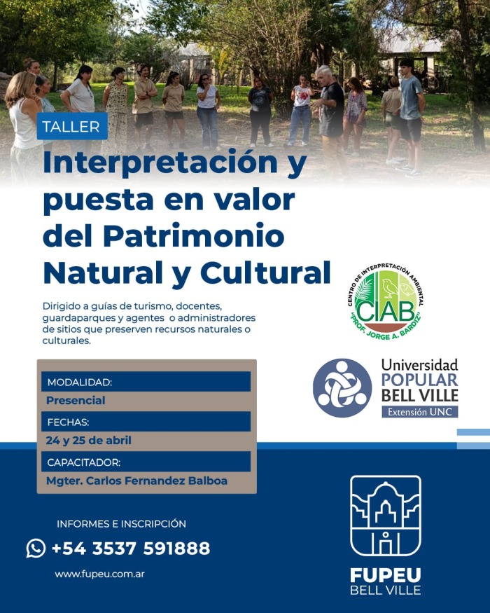 El taller "Interpretación y puesta en valor del Patrimonio Natural y Cultural" está dirigido a guías, docentes, guardaparques y agentes o administradores de sitios que preservan recursos naturales o culturales.